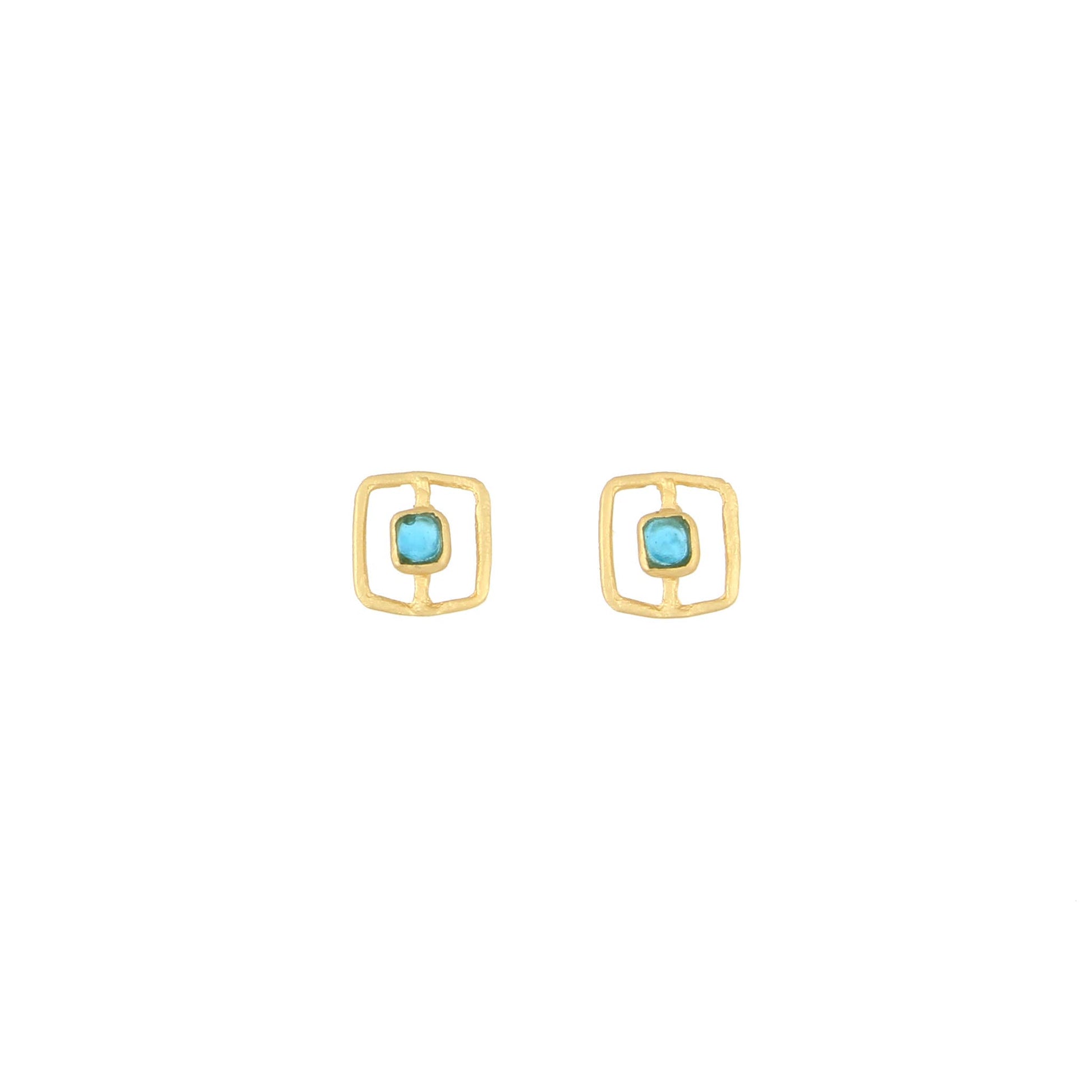 Fragments of colorful glass are situated within open squares on these unique post earrings.