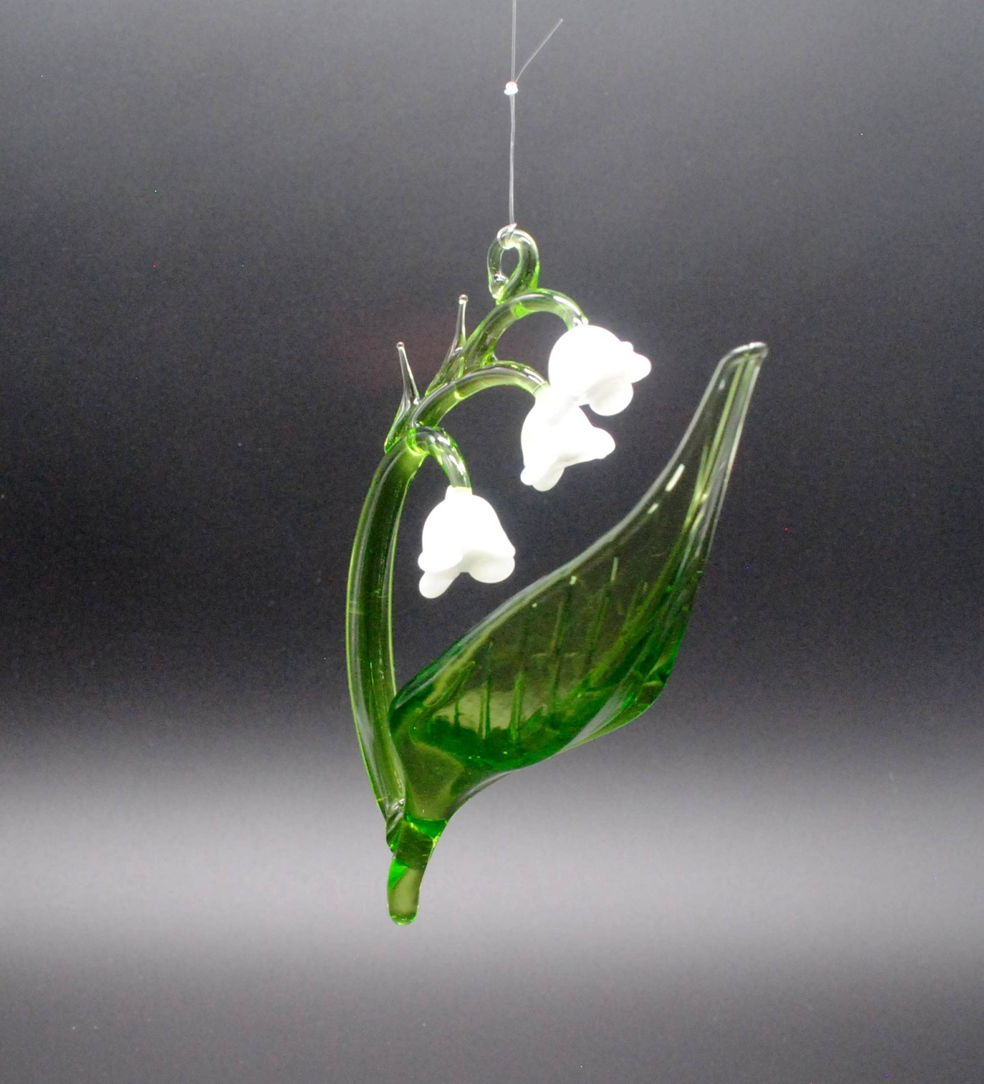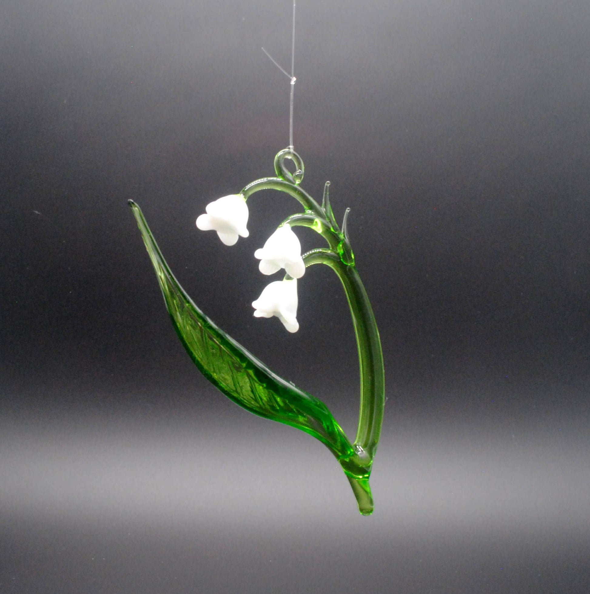 A delicate Lily of the Valley crafted from lampworked borosilicate glass.