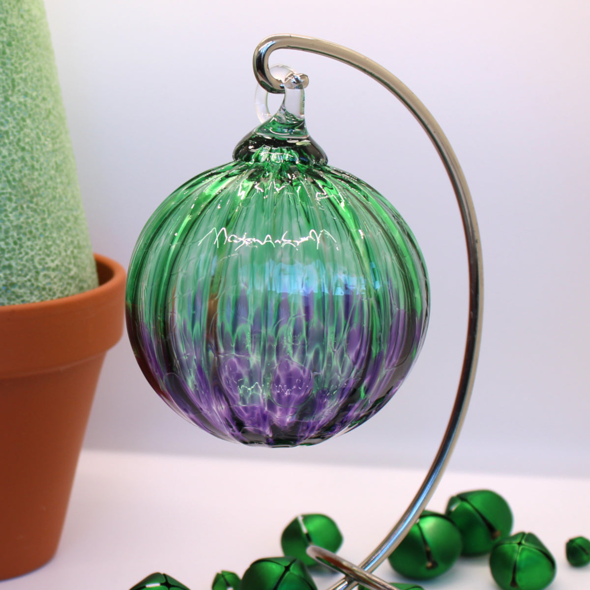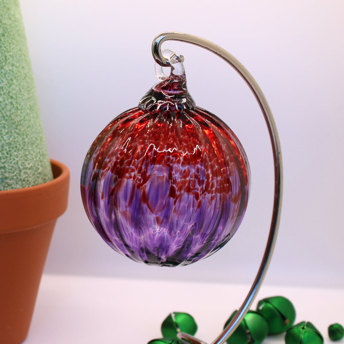 The vibrant ombre tones on these blown glass ornaments have added depth thanks to a lobed effect that alternately concentrates and thins the color.
